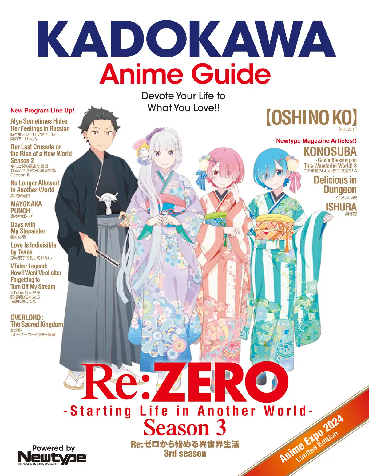 Date and Time: Saturday, July 6, 10:30 AM – 11:20 AM Location: JW-Diamond Guests: Yusuke Kobayashi (V.A of Subaru Natsuki), Masahiro Shinohara (Director), Haruka Sagawa (Character Designer), Sho Tanaka (KADOKAWA Producer)