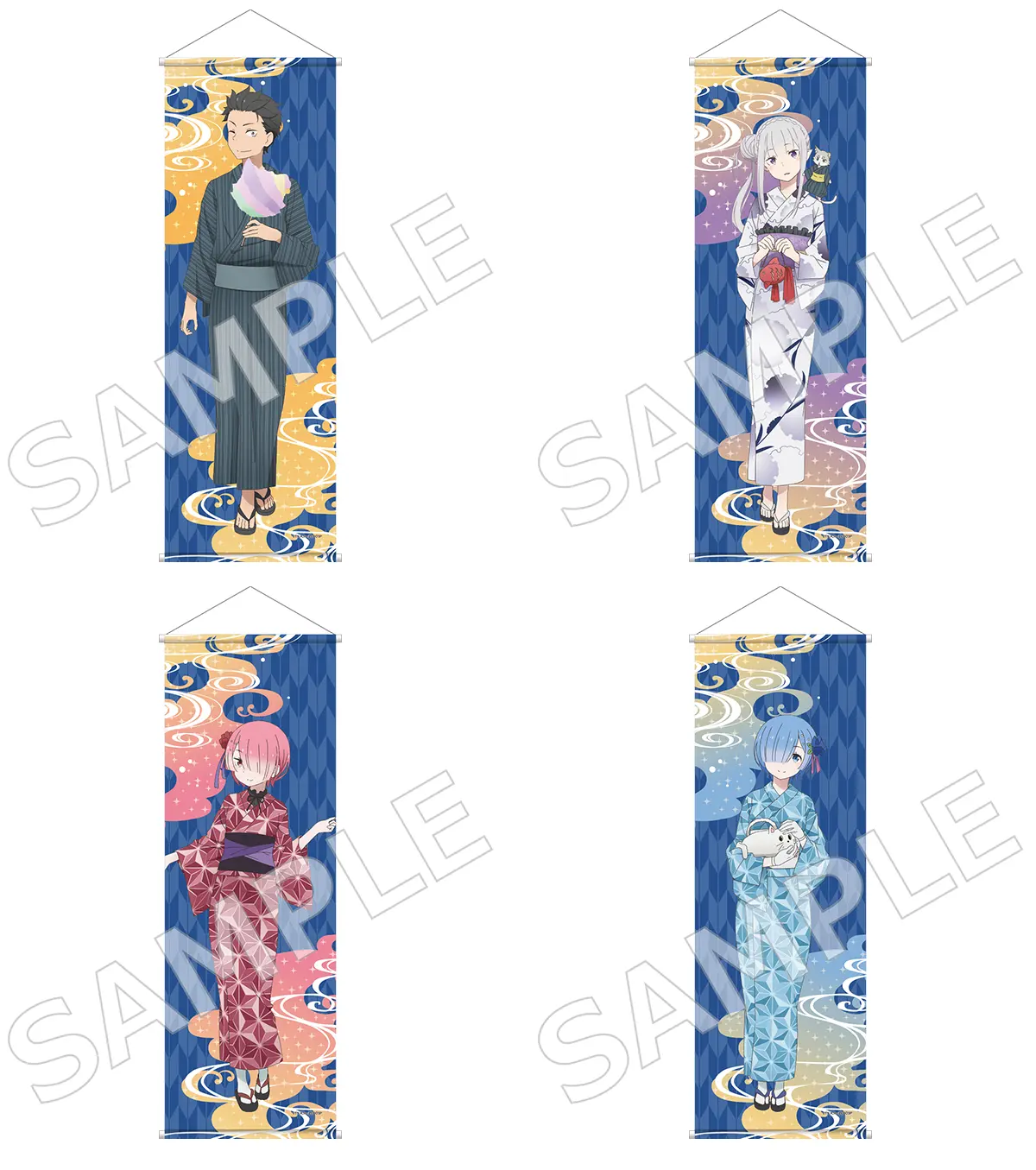 「Re:ゼロから始める異世界生活」B2ハーフタペストリー 七夕まつりver. スバル/エミリア/ラム/レム 各2,200円(税込)
