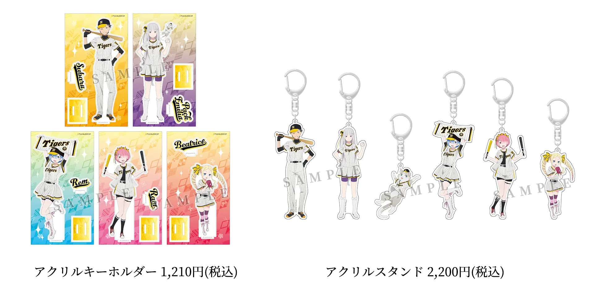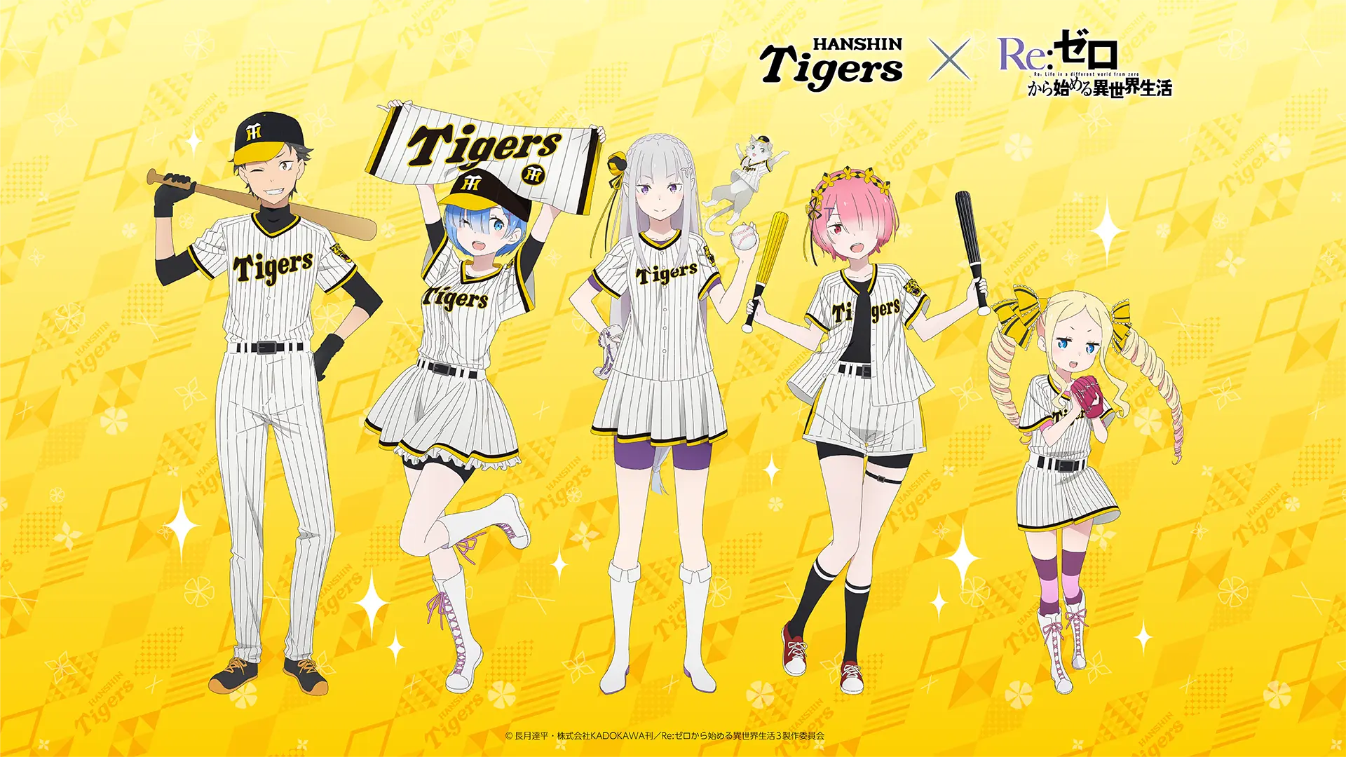 TVアニメ『Re:ゼロから始める異世界⽣活』と阪神タイガースのコラボナイターを、8⽉20⽇(⽕)対ヤクルト戦(京セラドーム)にて開催することが決定いたしました。 当⽇は、ナツキ・スバル役の⼩林裕介、エミリア役の⾼橋李依、ベアトリス役の新井⾥美がファーストピッチセレモニー等のイベントにも参加。 また、コラボを記念した限定グッズも発売予定ですので、詳細をお楽しみに! 阪神コラボ公式サイト:https://hanshintigers.jp/news/topics/info_9474.html