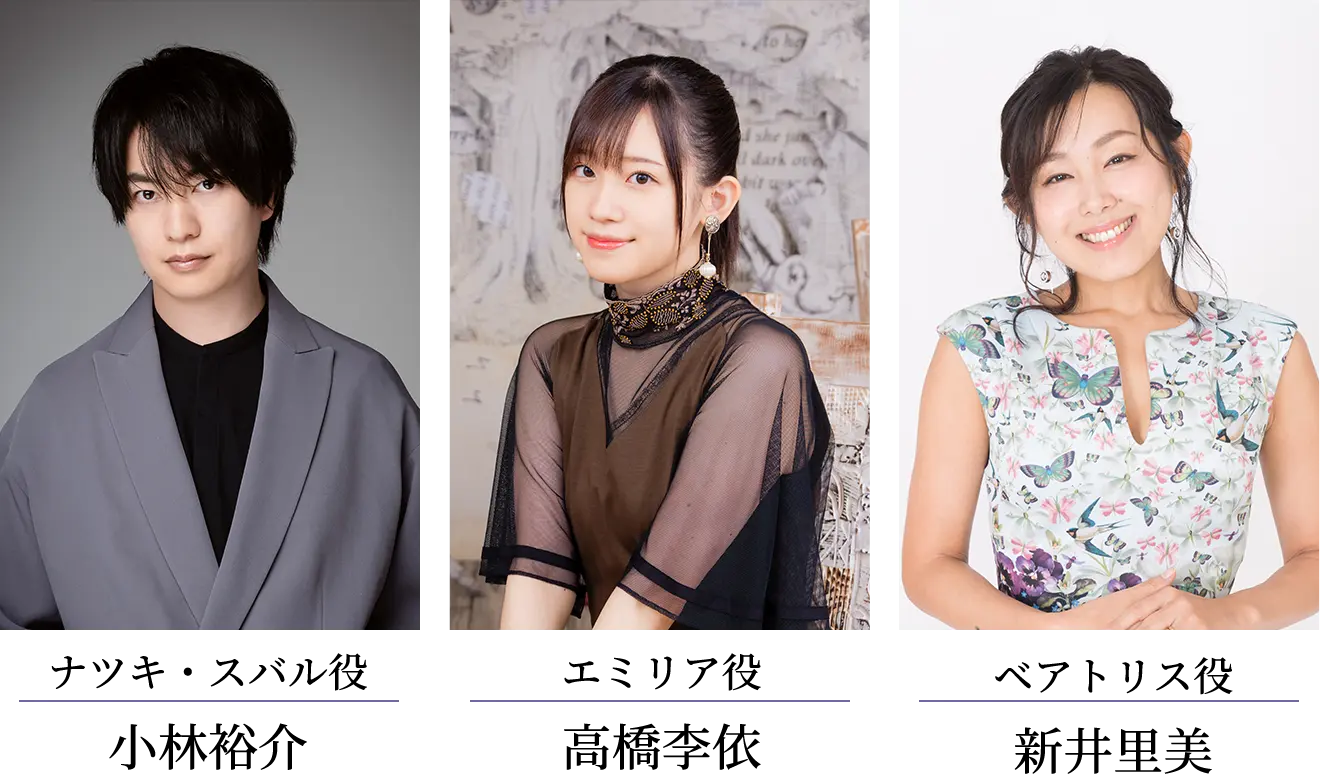 小林裕介(ナツキ・スバル役) 岡本信彦(ガーフィール・ティンゼル役) 山根綺(リリアナ・マスカレード役)