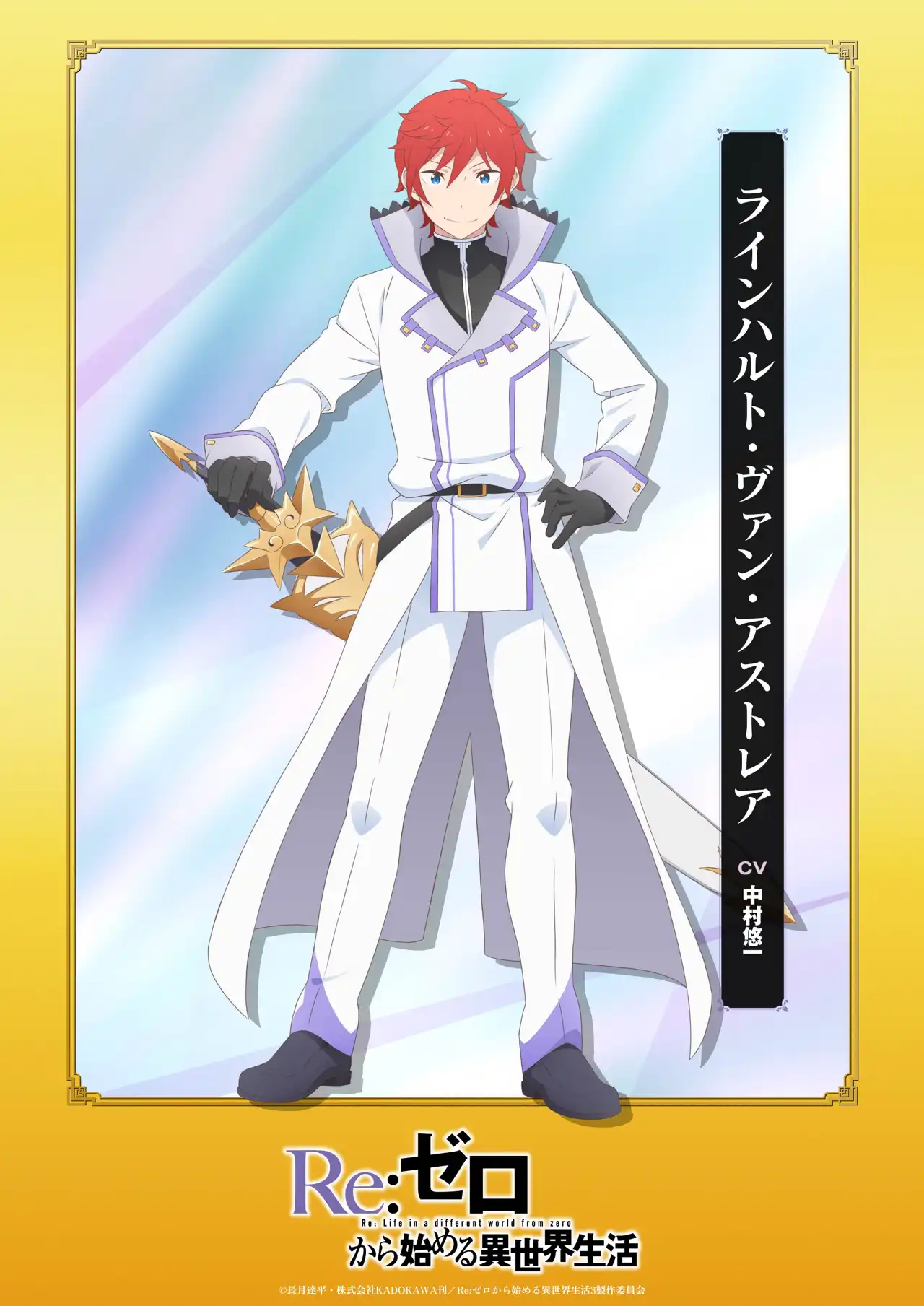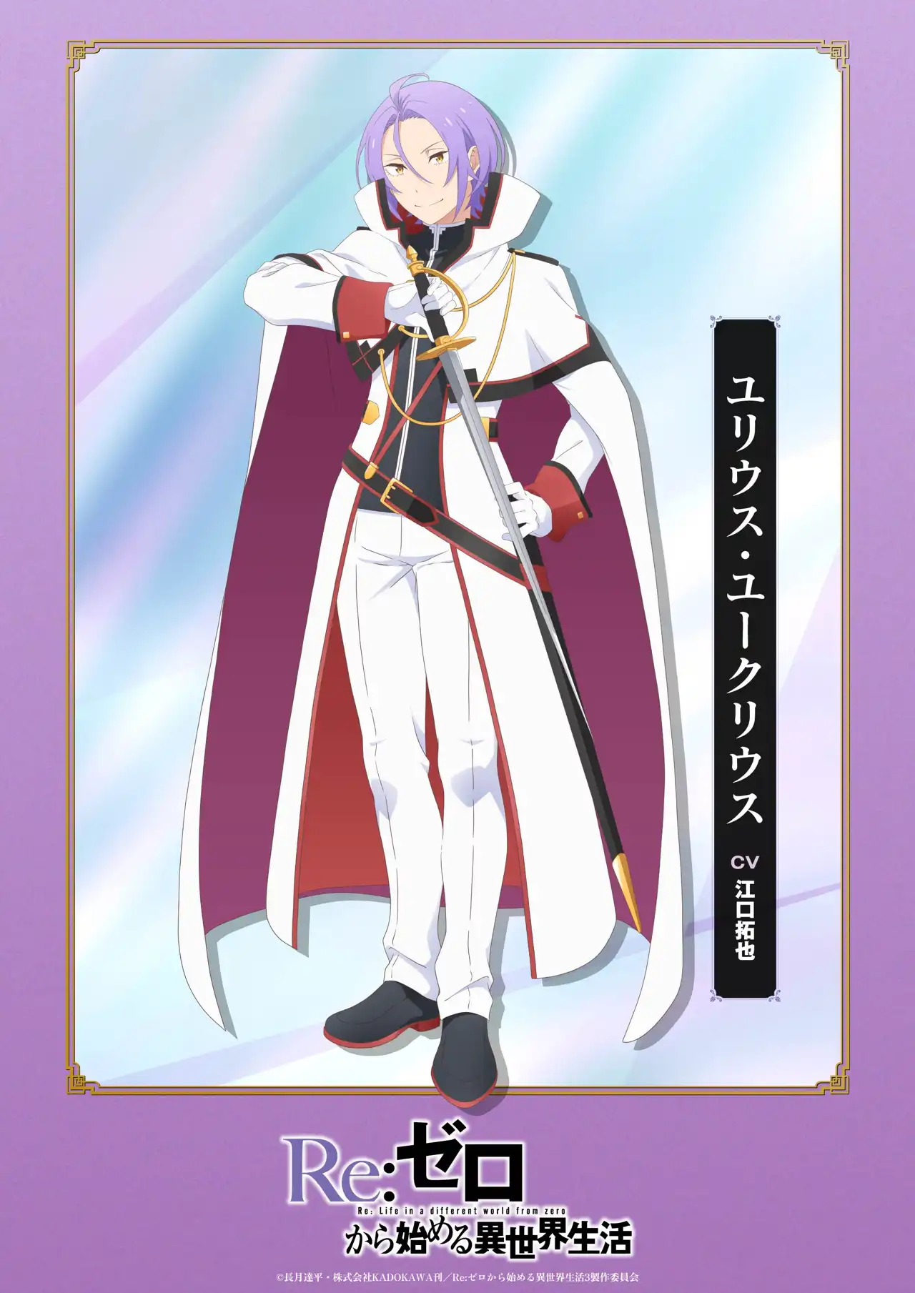 13週連続一部再放送&一挙配信企画「リゼロードショー」実施中! エンドカードに合わせて、各キャラのの3rd season キャラビジュアルを公開。 【王選編 後編】では、アナスタシア、ユリウスの新規ビジュアルを公開!
