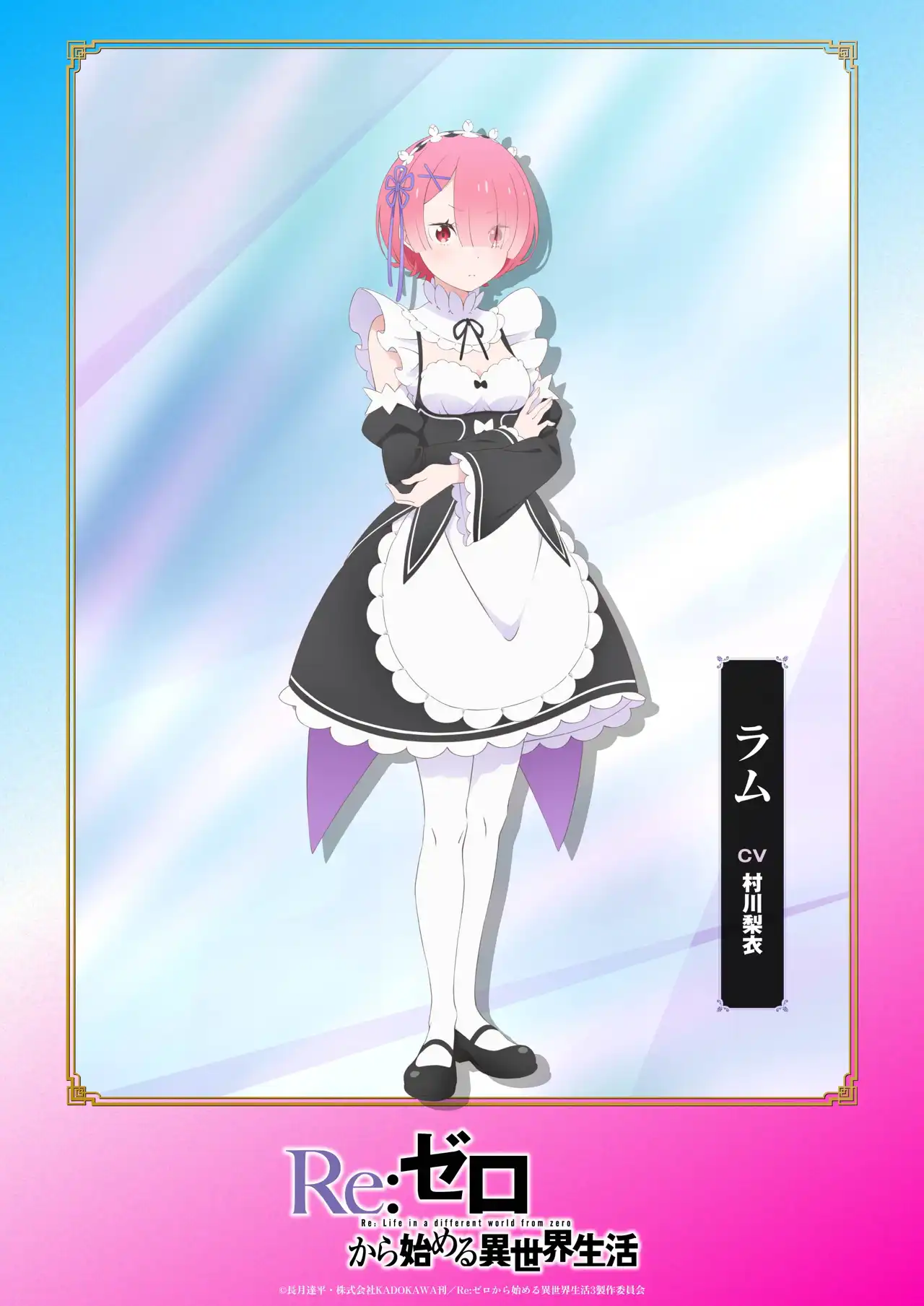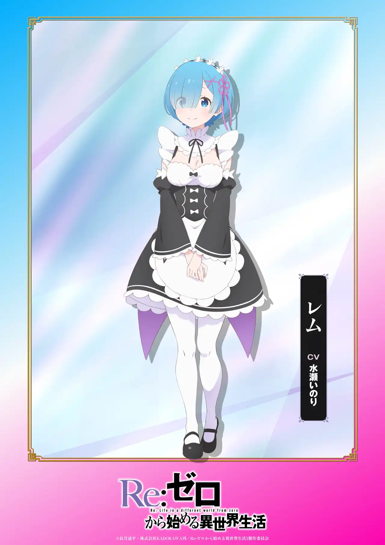 13週連続一部再放送&一挙配信企画「リゼロードショー」実施中! エンドカードに合わせて、各キャラのの3rd season キャラビジュアルを公開。 【屋敷編 前編】では、ラム・レムの新規ビジュアルを公開!