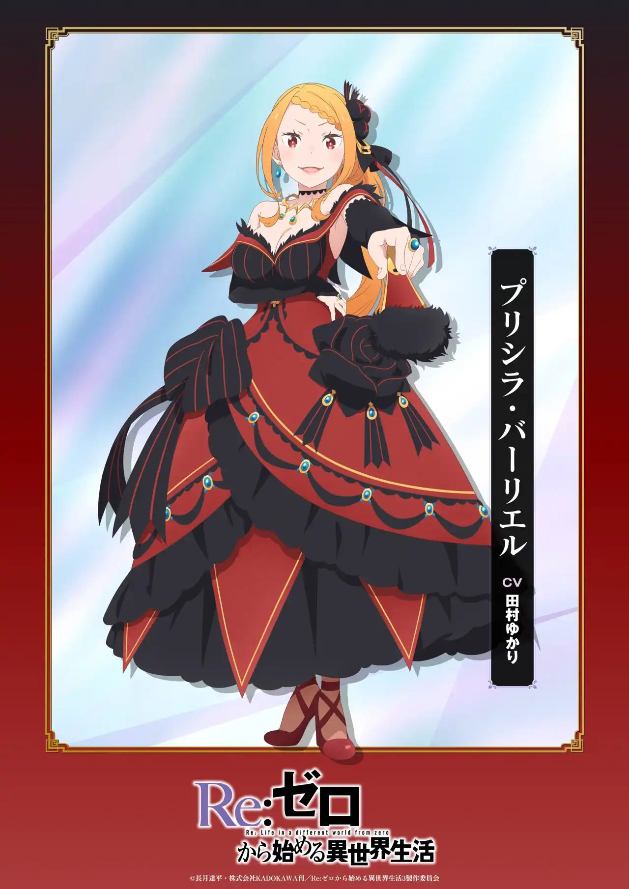 13週連続一部再放送&一挙配信企画「リゼロードショー」実施中! エンドカードに合わせて、各キャラのの3rd season キャラビジュアルを公開。 【王戦編 前編】では、プリシラ、アルの新規ビジュアルを公開!
