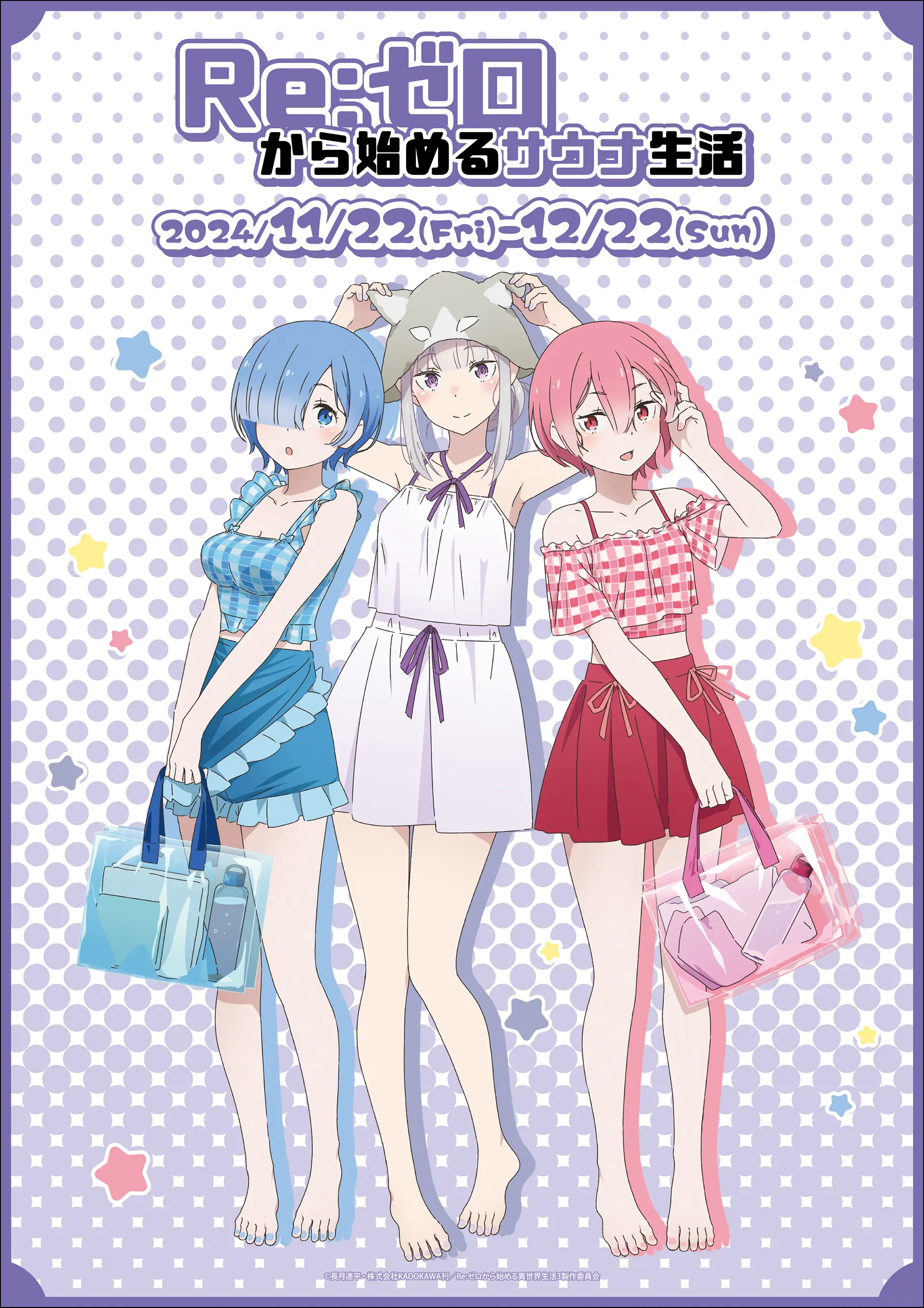 新規描き下ろしを使用した商品の発売や施設利用特典の配布などサウナで「リゼロ」をお楽しみください!