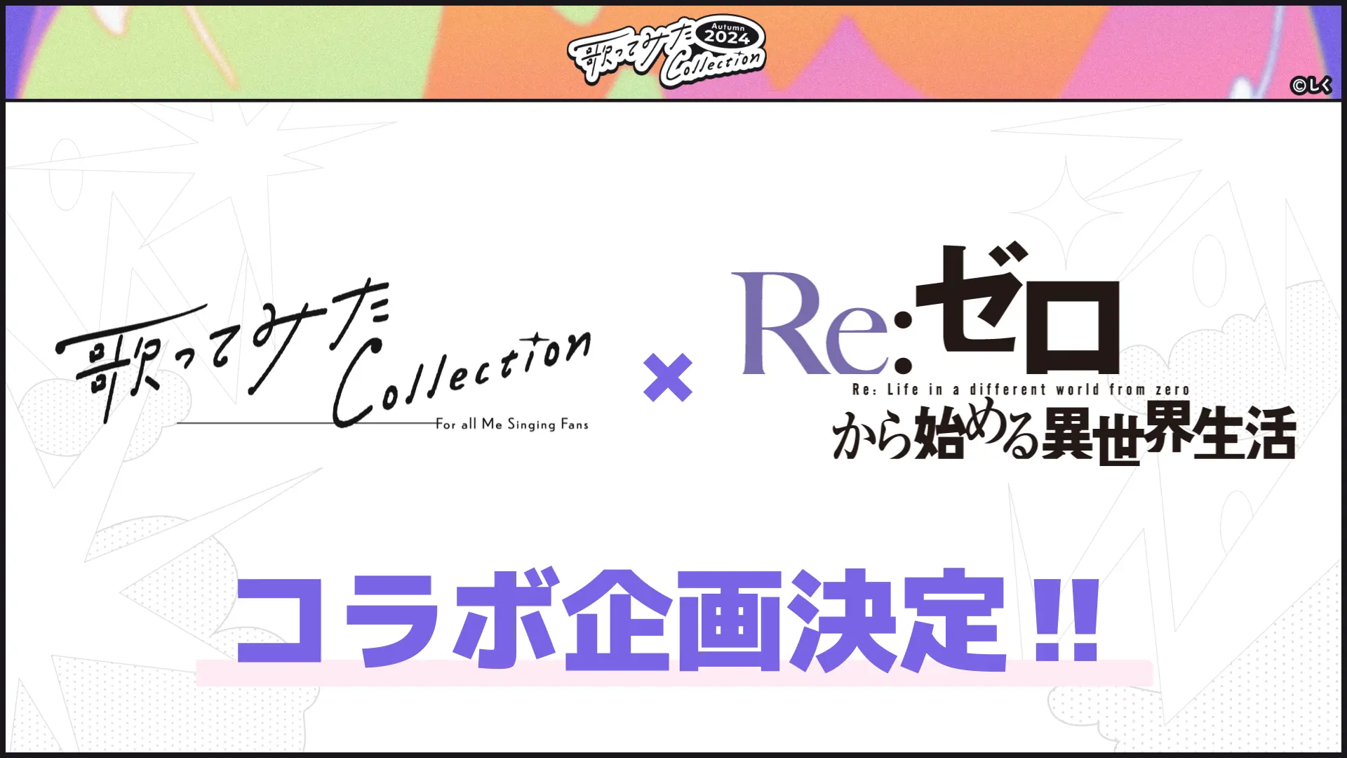 TVアニメ「Re:ゼロから始める異世界生活」3rd seasonと、歌ってみた最大級の動画投稿祭「歌ってみた Collection 〜2025 Spring〜」のコラボが決定! 合わせて、ニコニ・コモンズにてリゼロシリーズ全楽曲のオフボーカル音源の無償配布が今冬決定!リゼロの曲を歌ってお祭りに参加してください! 企画の詳細は、来年オープンします歌コレ2025春の公式ホームページで発表されますので、お楽しみに。