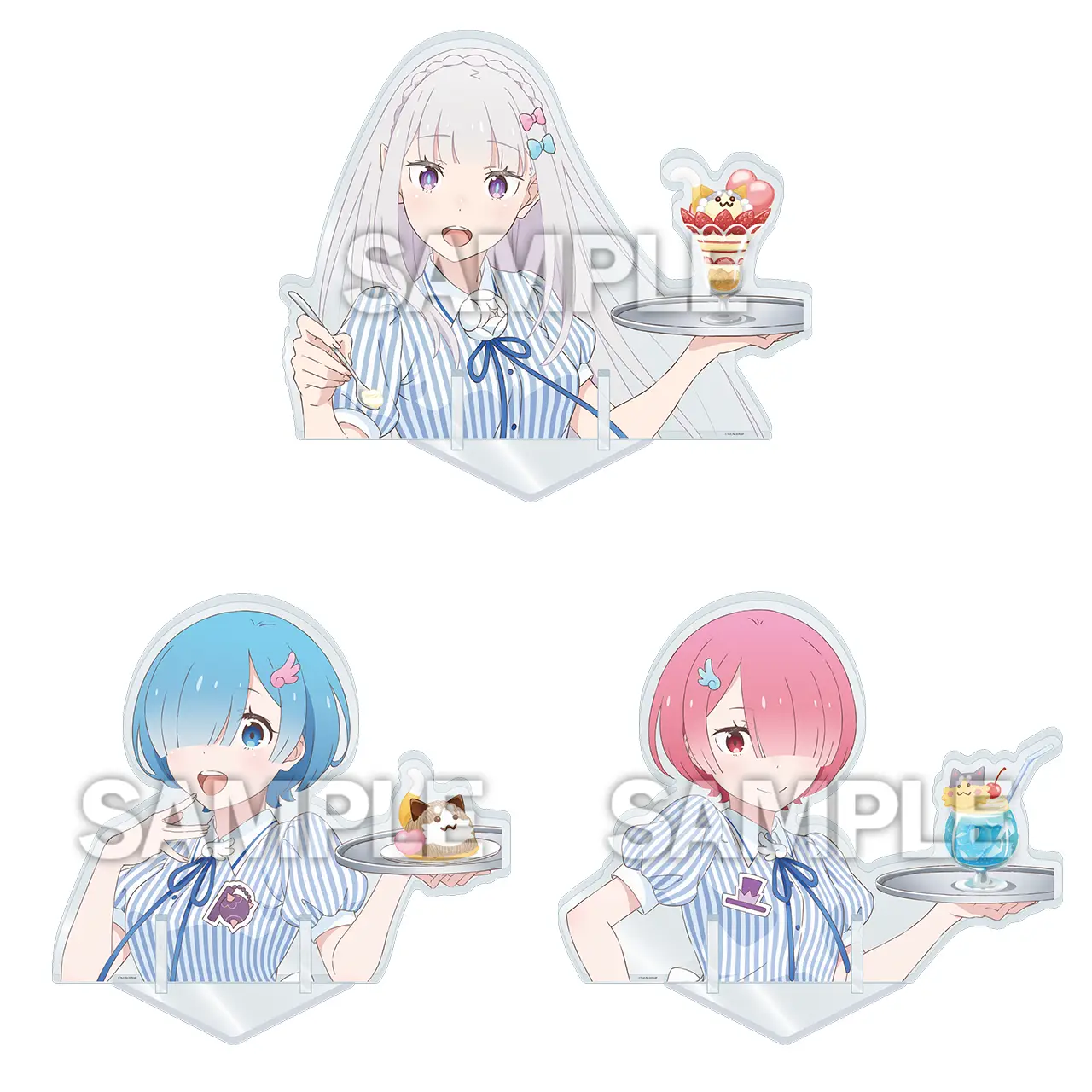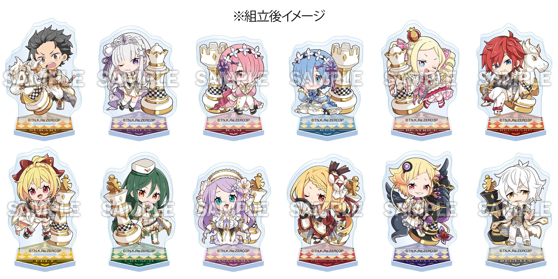 ●価格:各990円(税込) ●サイズ:(板状時)約H210×W160mm (組立時)約H130×W70mm ●材質:アクリル ※@Loppi・HMV&BOOKS onlineではミニアクリルスタンドセットA(スバル・エミリア・ベアトリス)(税込2,970円)、ミニアクリルスタンドセットB(ラム・レム・クルシュ)(税込2,970円)、ミニアクリルスタンドセットC(フェルト・ラインハルト・レグルス)(税込2,970円)、ミニアクリルスタンドセットD(アナスタシア・プリシラ・カペラ)(税込2,970円)での販売となります。