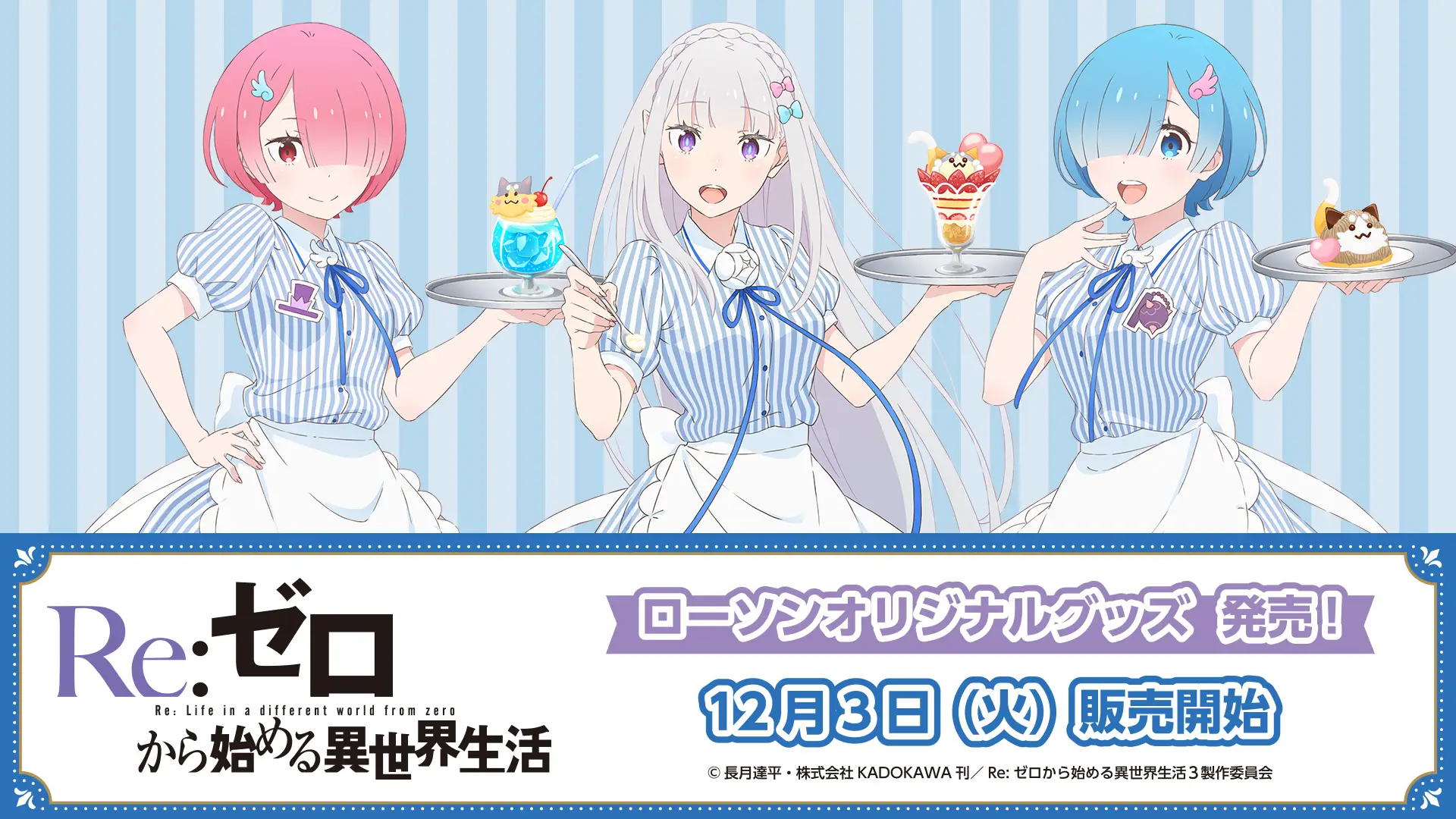 12月3日(火)より販売開始の「Re:ゼロから始める異世界生活」ローソンオリジナルグッズを公開! 描き下ろしイラストを使用したグッズを多数ご用意しております! また、ローソン店内のマルチコピー機サービス「ローソンプリント」ではローソンオリジナルランダムステッカーも販売します!
