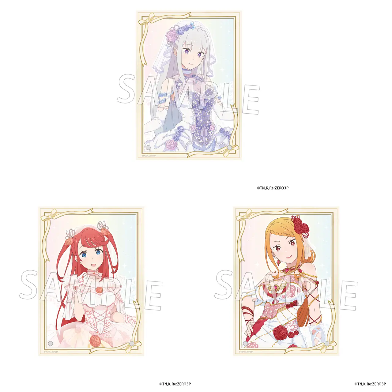 TVアニメ『Re:ゼロから始める異世界生活』より、描き下ろしイラストを使用した、ウェディング衣装がかわいいクリアファイルセットが登場! ※1PACK3枚入り 【価格】 1,500円(税込) 【仕様】 サイズ:A4収納サイズ 材質:PP