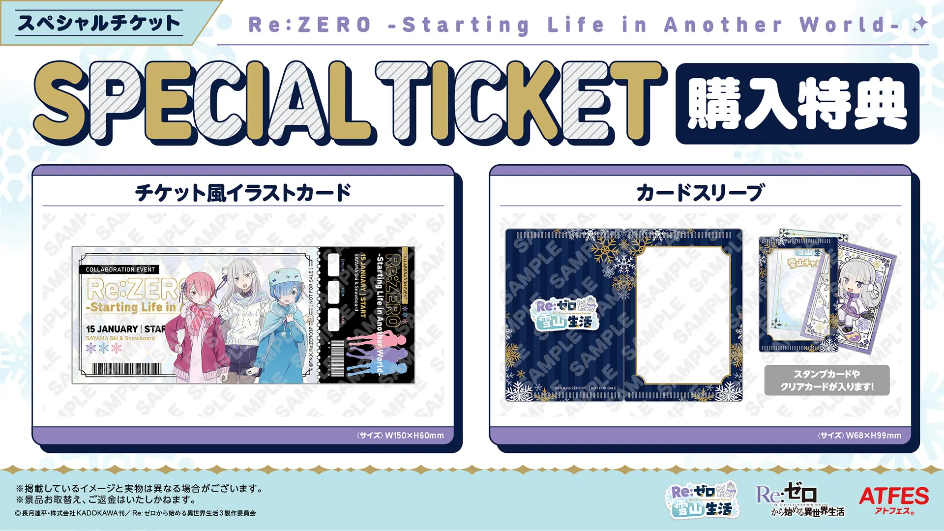 アニメイト秋葉原のオンリーショップ会場にて「Re:ゼロから始める異世界生活」関連商品(キャラクターグッズ・書籍・CD・DVD・BD)をご購入・ご予約内金税込3,300円毎に、抽選会に1回ご参加いただけます。