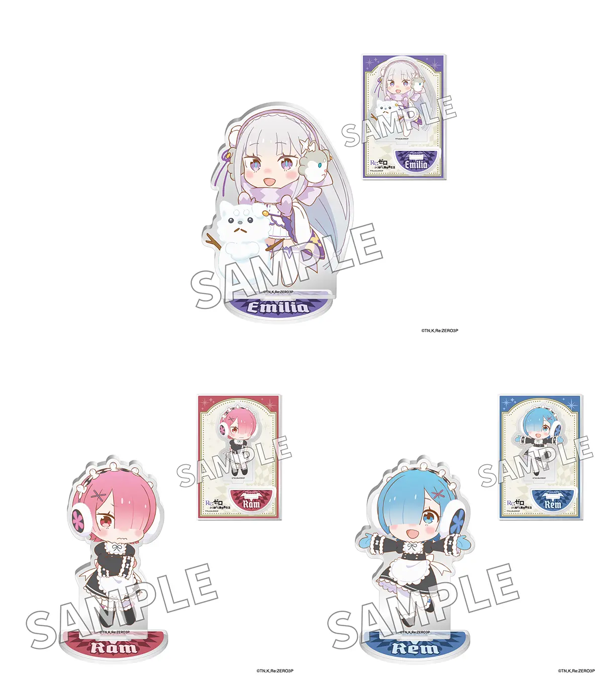 TVアニメ『Re:ゼロから始める異世界生活』より、エミリア、ラム、レムの雪遊び姿が可愛いミニキャラ仕様のアクリルスタンドフィギュアが登場です! 【価格】 各1,300円(税込) (全3種) 【仕様】 全3種 サイズ: 本体:約H102mm~96mm✕W78mm~W50mm 台座:約H29mm✕ W54mm ※キャラクターによりサイズは異なります。 フレーム:約H150mm×W100mm(共通) 材質:アクリル樹脂