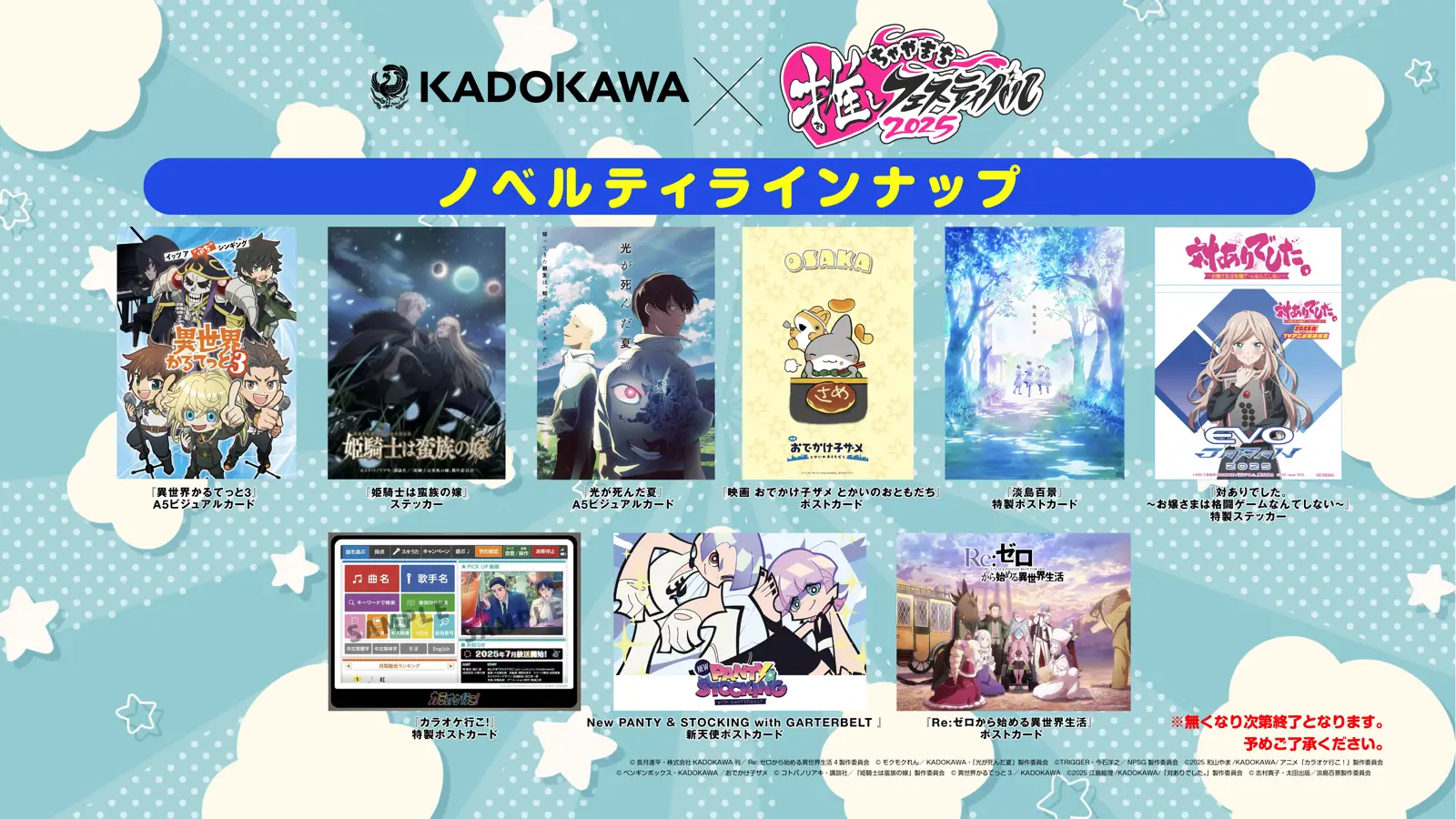 アメリカ・ロサンゼルスにて2025年7月3日(木)~6日(日)に開催されるアメリカ最大規模のアニメ・コンベンションイベント『ANIME EXPO(アニメエキスポ)2025』に今年もKADOKAWAブースが出展いたします! 現地会場で販売する『Re:ゼロから始める異世界生活』新商品を、2025年6月18日(水)AM11時よりカドストにて予約販売いたします。 お見逃しなく!