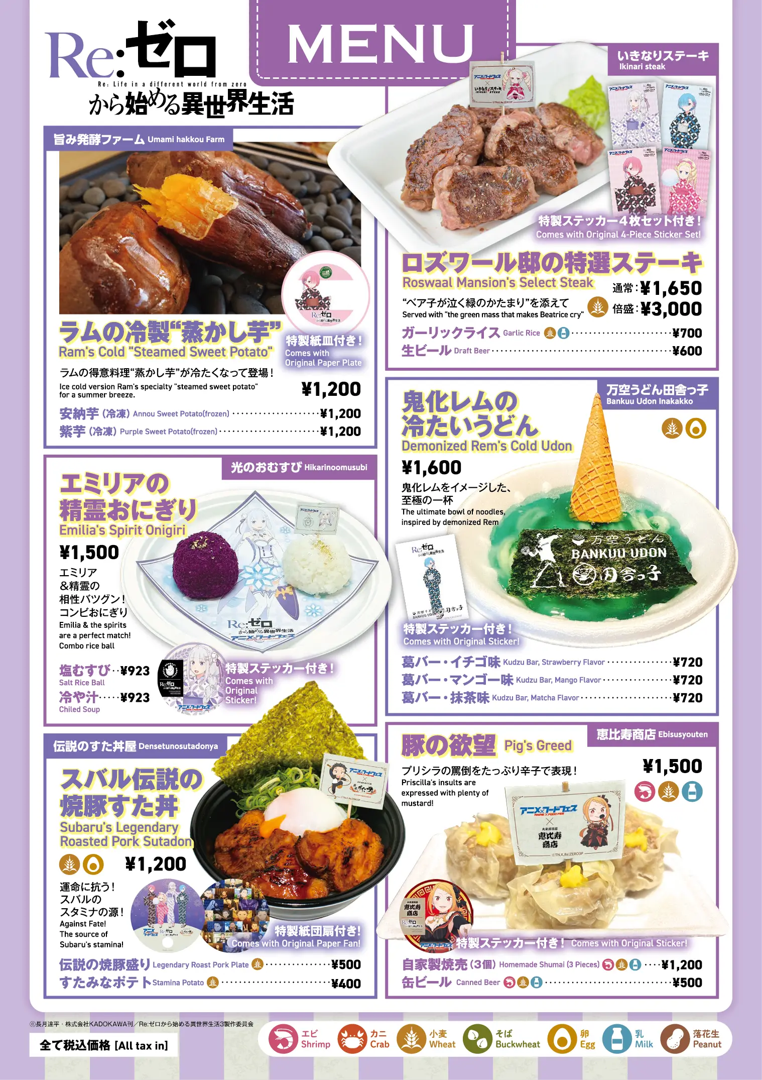 本イベントでは、『Re:ゼロから始める異世界生活』をイメージしたフードやドリンク、オリジナルグッズが登場します。イベント限定の購入特典ノベルティもご用意しておりますので、ぜひこの機会にお楽しみください。