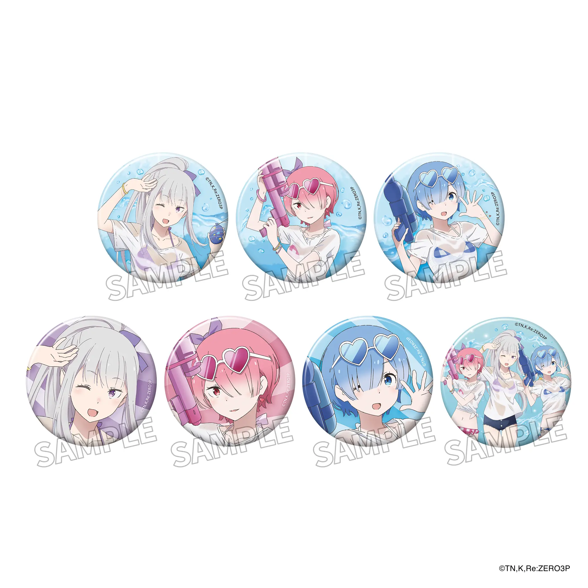 TVアニメ『Re:ゼロから始める異世界生活』より、水遊び姿がかわいい描き下ろしイラストを使用したトレーディング缶バッジが登場!(全7種) 7パック入りの1BOX購入で全柄をそろえることができます。(未開封時に限ります) 【価格】 1PACK 440円(税込)/BOX 3,080円(税込) ※C106会場・カドストではBOX販売のみ 【仕様】 1BOX7PACK入り/1PACK1個入り/全7種トレーディング ※1BOXで全7種揃います(未開封時に限ります) サイズ:直径約56mm 材質:紙、鉄、PET