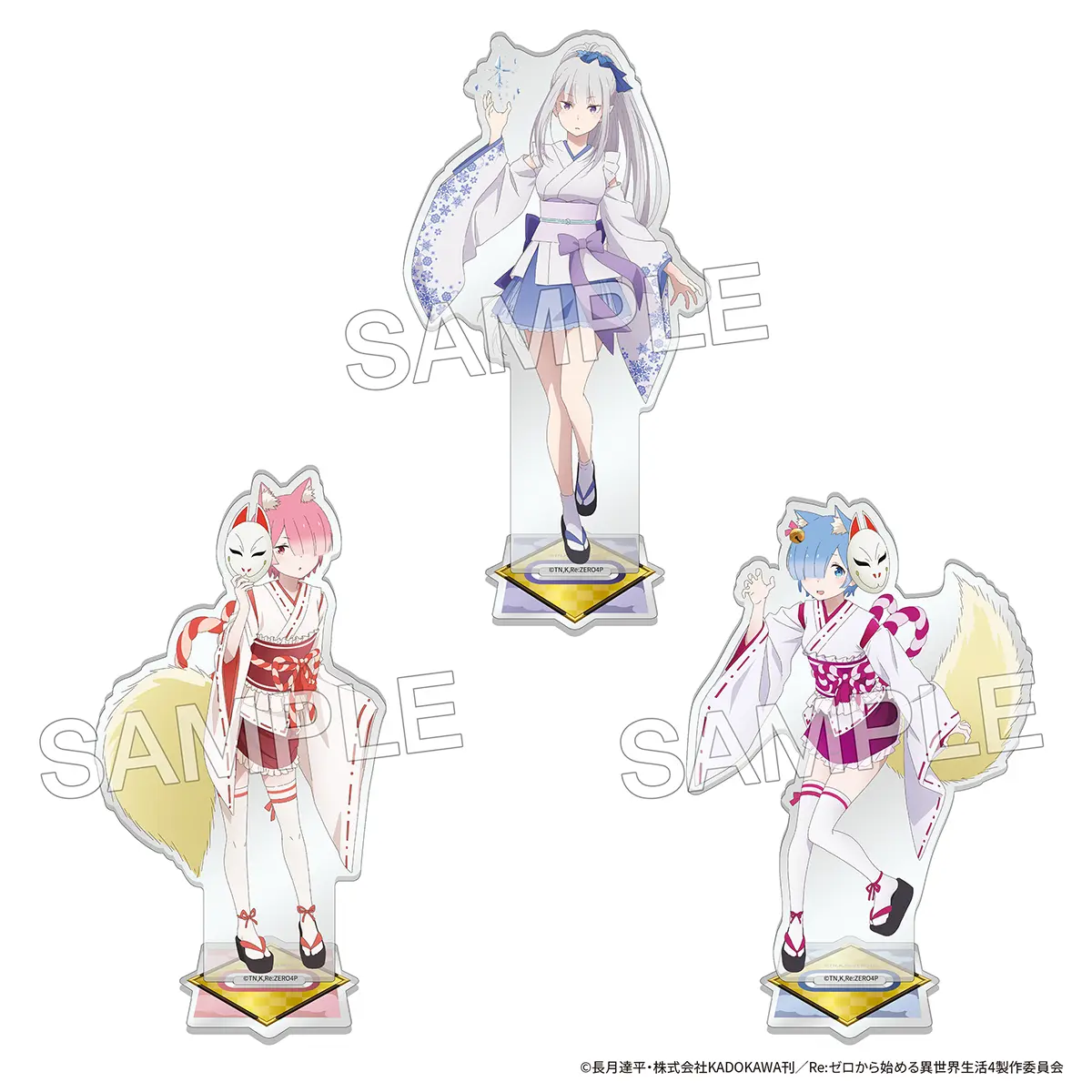 TVアニメ『Re:ゼロから始める異世界生活』より、和服装が可愛いアクリルスタンドフィギュアが登場!(全3種) 【価格】 各1,650円(税込) 【仕様】 サイズ:本体 エミリア 約H152mm×W64mm クルシュ 約H154mm×W62mm フェルト 約H143mm×W46mm 台座:約H50mm×W50mm 材質:アクリル樹脂