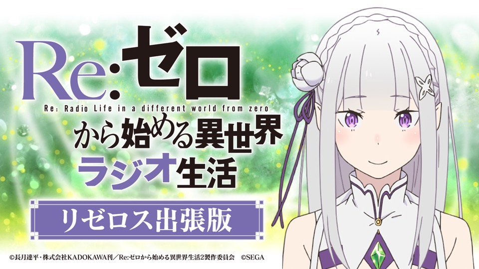 | アーカイブ配信 | 2020年11月2日(月)より インターネットラジオステーション<音泉> http://www.onsen.ag/program/rezero/ ※おまけコーナーつきで配信されます。 |