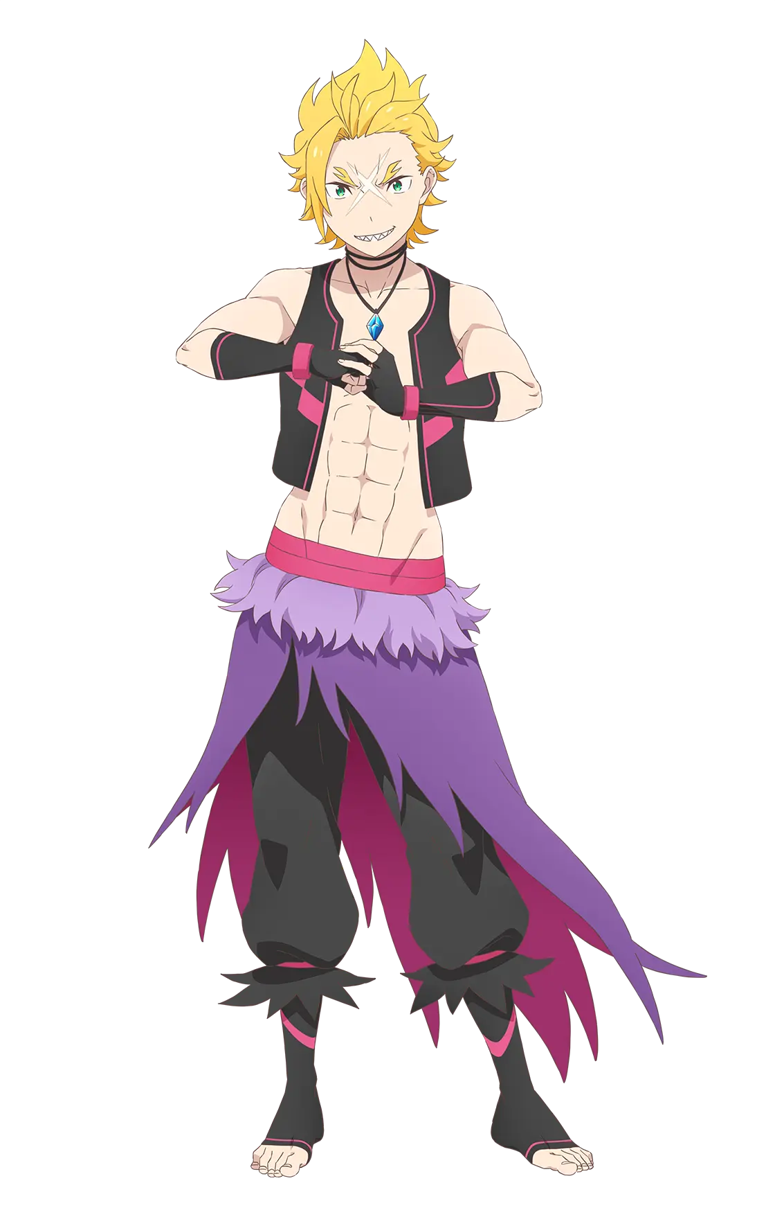 凶悪な目つきに鋭い牙、その外見の印象を裏切らない短気で野蛮な性格の青年。 特徴的な喋り方と、多用する謎の慣用句で、ちょくちょくスバルを翻弄する。 『聖域』の守護者としてスバルと対立したが、和解後は兄貴分として慕うようになり、エミリア陣営に武官として加わった。大地から力を得る『地霊の加護』を持つ他、巨大な虎への獣化も可能。
