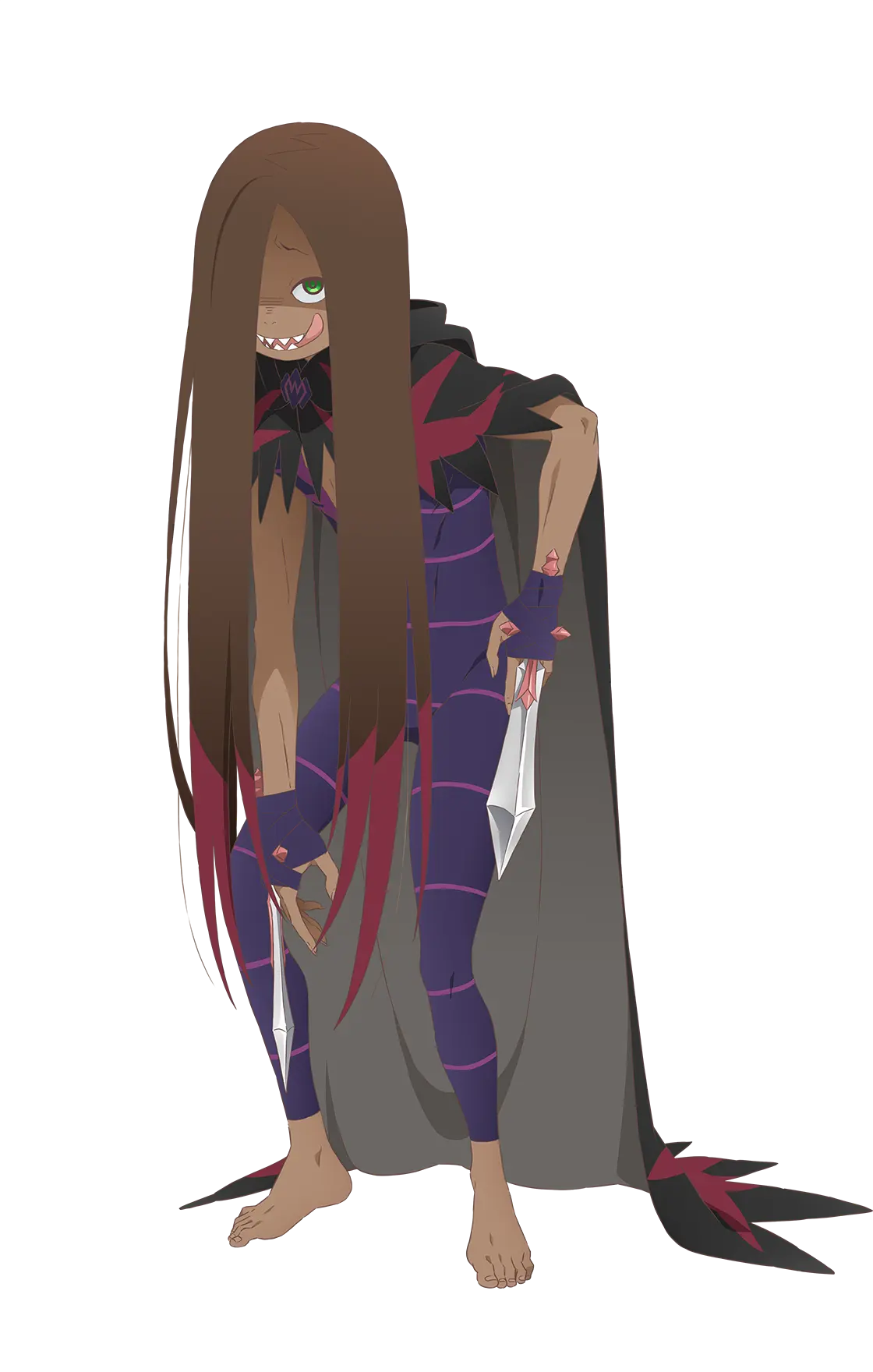黒髪を長く伸ばし、艶めいた雰囲気をまとう美女。その正体は何者かからの依頼によってエミリアの徽章を狙っていた暗殺者だった。独特な形状を持つナイフで腹部を切り裂き、その中身を観察することに興奮を覚える異常性から『腸狩り』の異名を持つ。