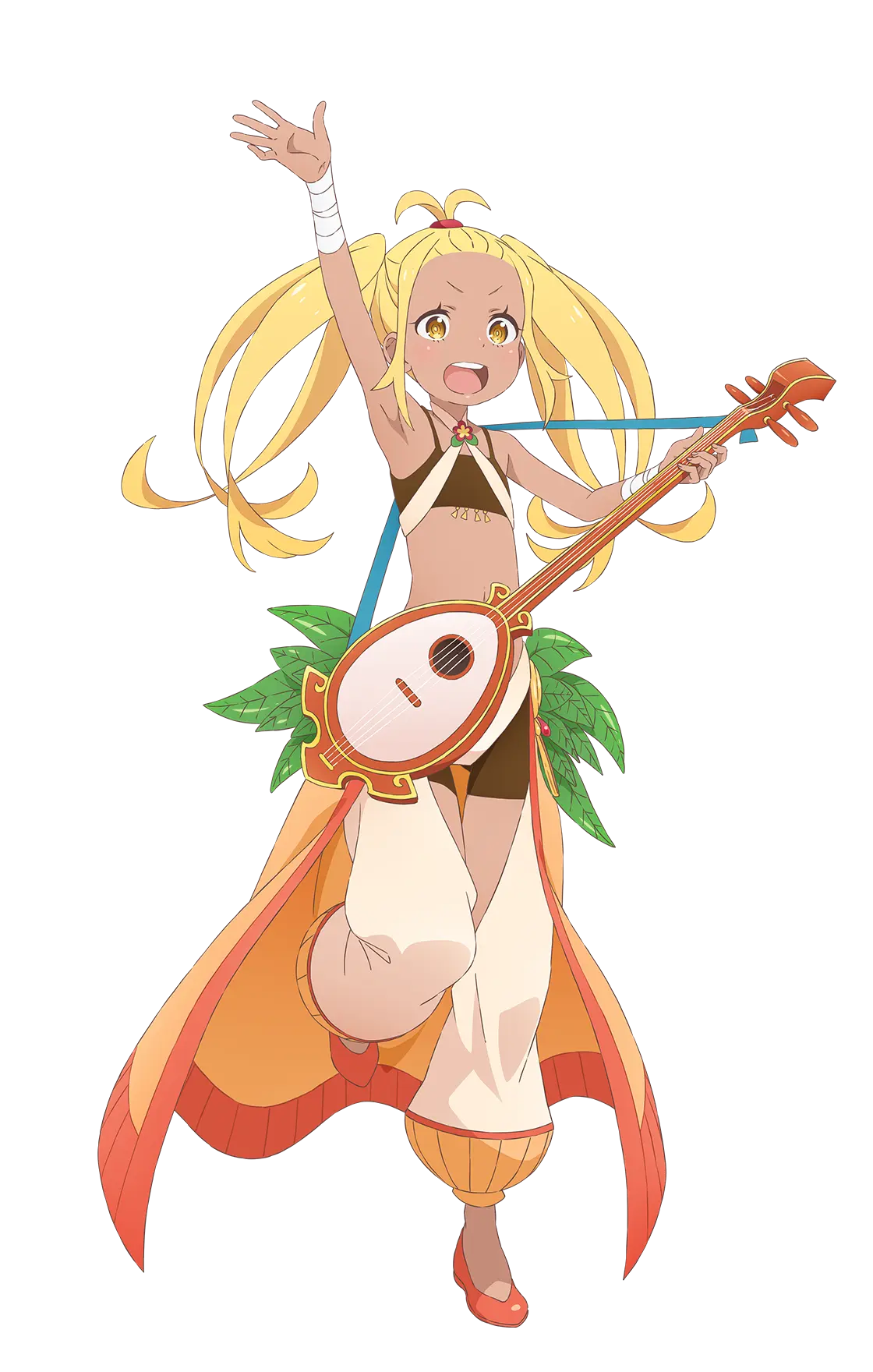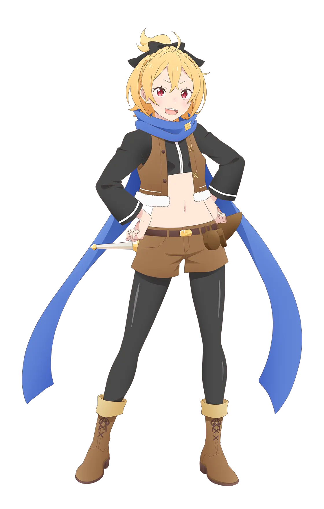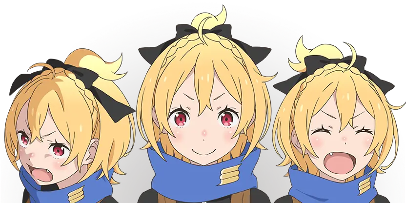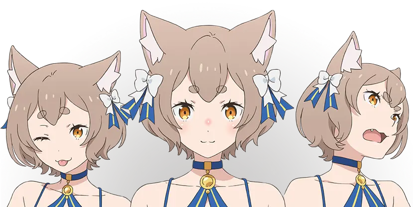 ホーシン商会専属の傭兵団「鉄の牙」の副団長を務める子猫人の女の子。 裏表のない自由奔放な性格で、小さな体躯も相まって子どものようにも見えるが、副団長にふさわしい戦闘力を有している。 三つ子の姉にあたり、二人の弟たちも「鉄の牙」に所属し、同じく副団長を務めている。 疲れや受けた傷を姉弟で分かち合うことができる『三分の加護』を持つ。