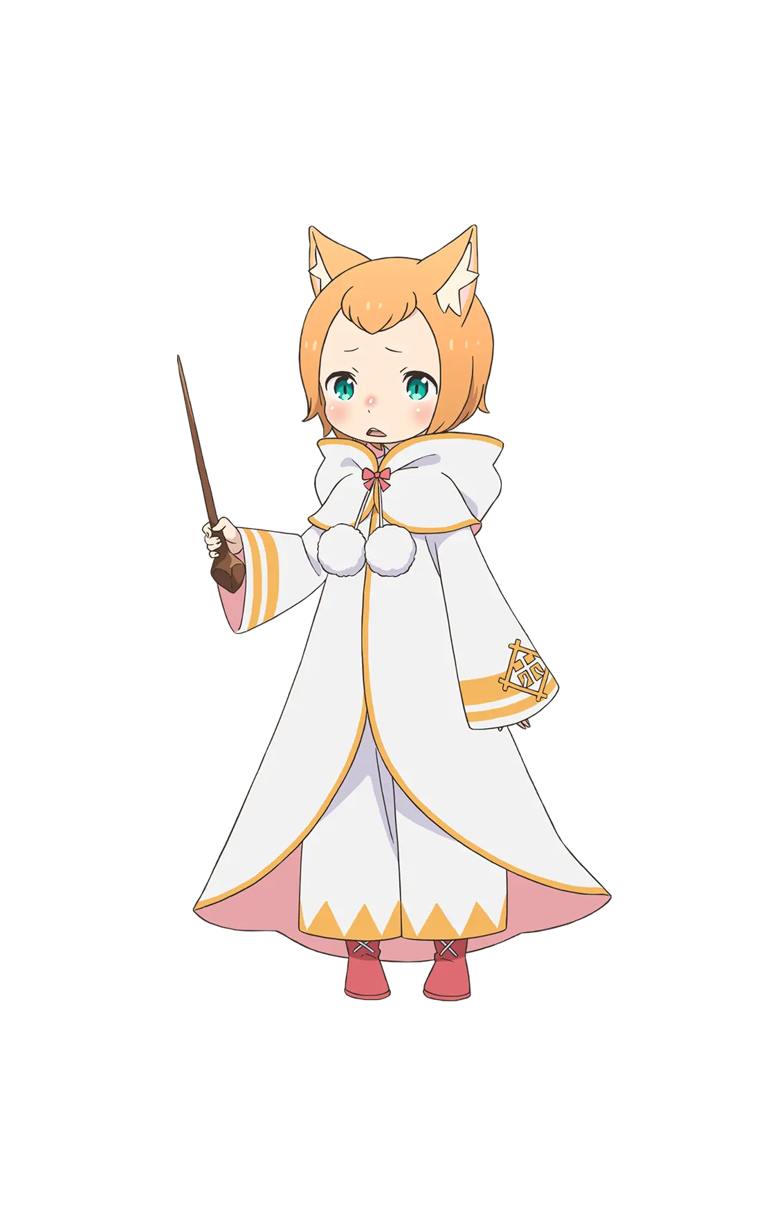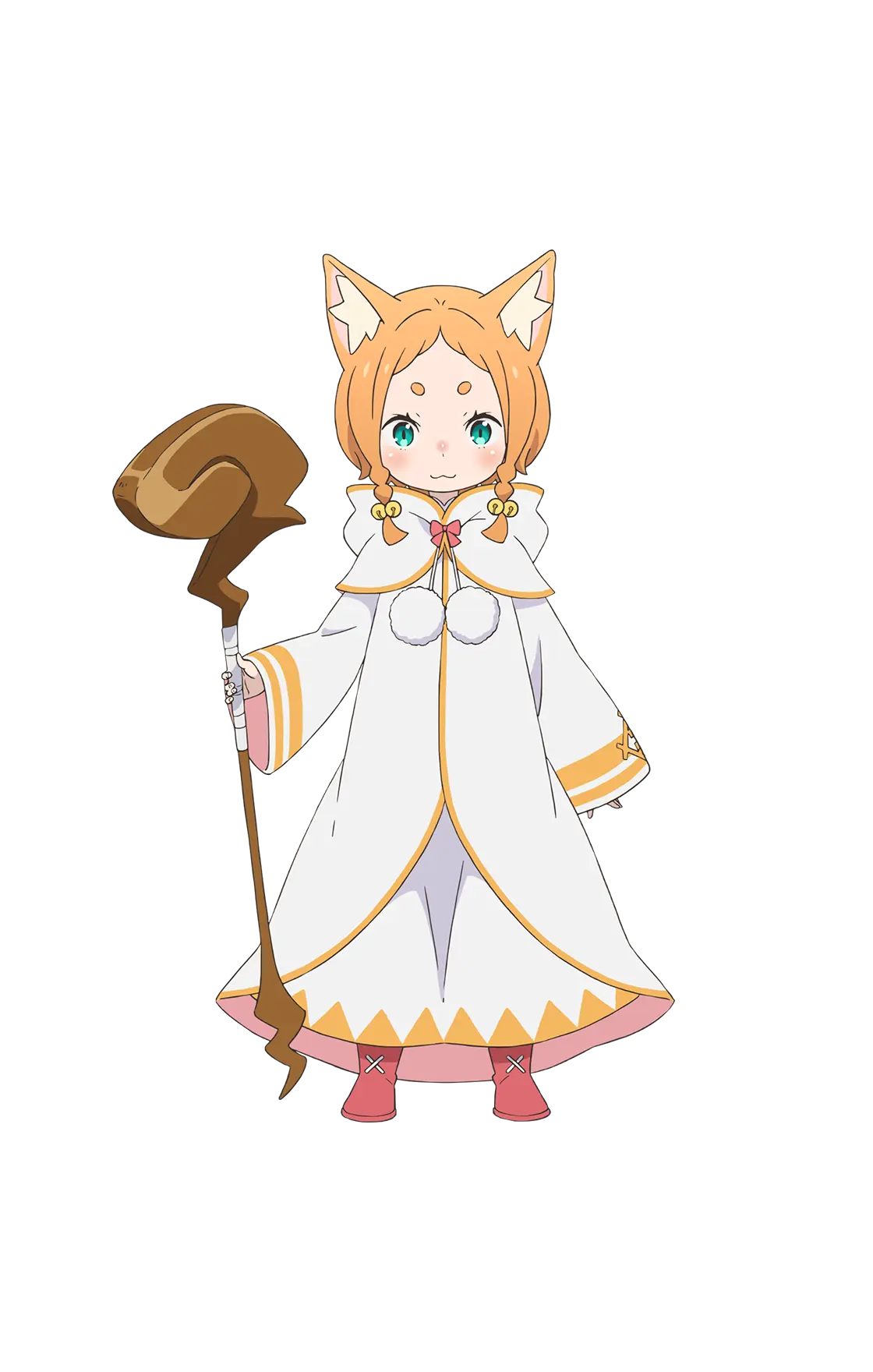 クルシュの騎士として、共に王選を戦う王都でも随一の治癒魔法の使い手。 フリフリの衣装に愛らしい仕草、そして頭には柔らかなネコミミ。挙動や言動の端々に『狙っている』感があるが、それがやけに似合う。長い付き合いであるクルシュへの忠誠心は、王選ペアの中でも特に強い。性別は男性。