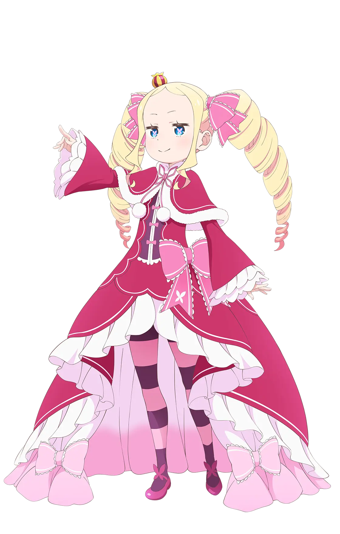 貧民街で育ち、盗みを生業としていた少女。 金色の髪色、紅の瞳というルグニカ王家の血筋にあらわれる容姿の特徴に気づいたラインハルトによって、半ば強引に保護され、ルグニカ王国の次代の王を決める王選の候補者の一人となった。