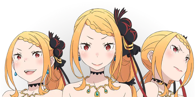 魔女教の幹部である大罪司教の一人。 『色欲』担当。金色の髪色、紅の瞳を持つ少女で、五十年以上前に実在したルグニカ王族の一人と同じ名前を名乗っている。 残忍な性格と下品極まりない口調が特徴的で、人間の尊厳と価値観を踏みにじる怪物。