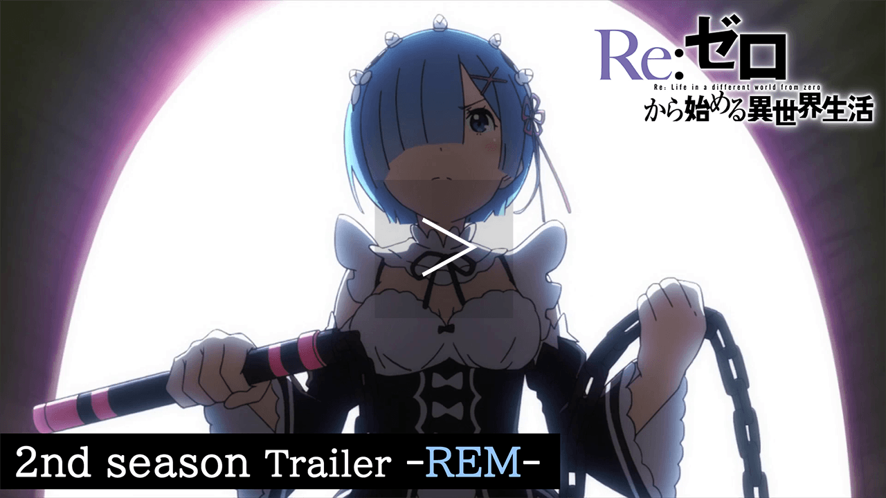 MOVIE 映像コンテンツ 1st season 2nd season 3rd season 4th season 2nd season 2nd season 後半クール 番宣CM 2nd season 後半クール PV 2nd season PV スバルver. 2nd season PV エミリアver. 2nd season PV レムver. 2nd season PV ラムver. 2nd season 番宣CM 2nd season PV 第2期 製作決定
