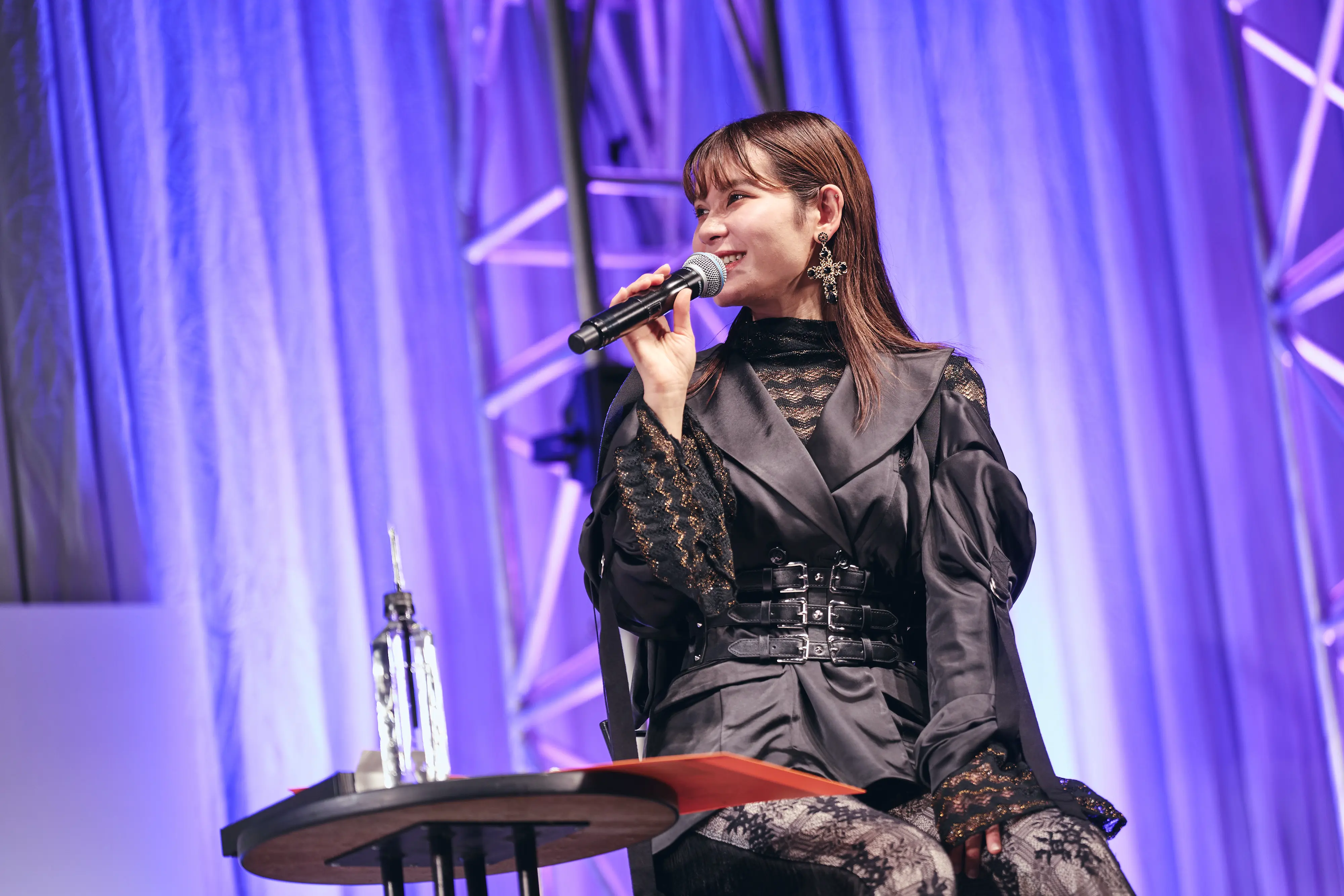 イベント中盤では、『リゼロ』の最新情報を告知。ここで、4th seasonは全11話からなる「喪失編」が4月8日(水)より放送・配信され、全8話からなる「奪還編」が8月12日(水)より放送開始予定であることが紹介されていきます。 さらに、OPテーマ曲は鈴木このみfeat. Ashnikkoが歌う「Recollect」、EDテーマ曲はMYTH & ROID feat. TK (凛として時雨) が歌う「Ender Ember」になることに触れ、本ステージでは、OPテーマ曲が使用されたノンクレジットオープニング映像が初公開されました。 映像を見終えた登壇者たちは、「鳥肌が立った!」「かっこよすぎる!」と興奮した様子。それぞれが「シャウラは癒し枠」「ユリウスは物悲しそう……」「とある魔女が一瞬映っていた……」「スバル、死に過ぎじゃない?」と、矢継ぎ早に感想も述べていました。 お知らせはまだまだ続き、アウグリア砂丘が舞台となる今期にちなんで、国内最大級の鳥取砂丘を有する鳥取県とのコラボレーション企画が4月19日(日)~8月31日(月)まで実施されることも発表。さらには、スバルの誕生日を祝うオンラインくじの展開も発表され、会場のボルテージはさらに上がっていきました。 余韻冷めやらぬなか、いよいよ鈴木さんによるライブステージへ。鈴木さんはOPテーマ「Recollect」について、「過去一攻めた楽曲になったんじゃないかな。今までとはテイストが異なる、ちょっと砂丘を思わせるような、迷宮入りっぽいサウンド感」と紹介しました。 実際のライブでは、ダンサーを交えたパフォーマンスと鈴木さんの圧倒的な歌唱力が会場全体を包み込みます。魂のこもった歌唱が終わると拍手が巻き起こり、大歓声が会場を包み込みました。